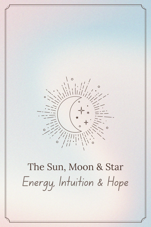 The sun, moon, and star symbolize powerful energy, inner intuition, and endless hope. Together, they guide, inspire, and light your path with positivity and balance.