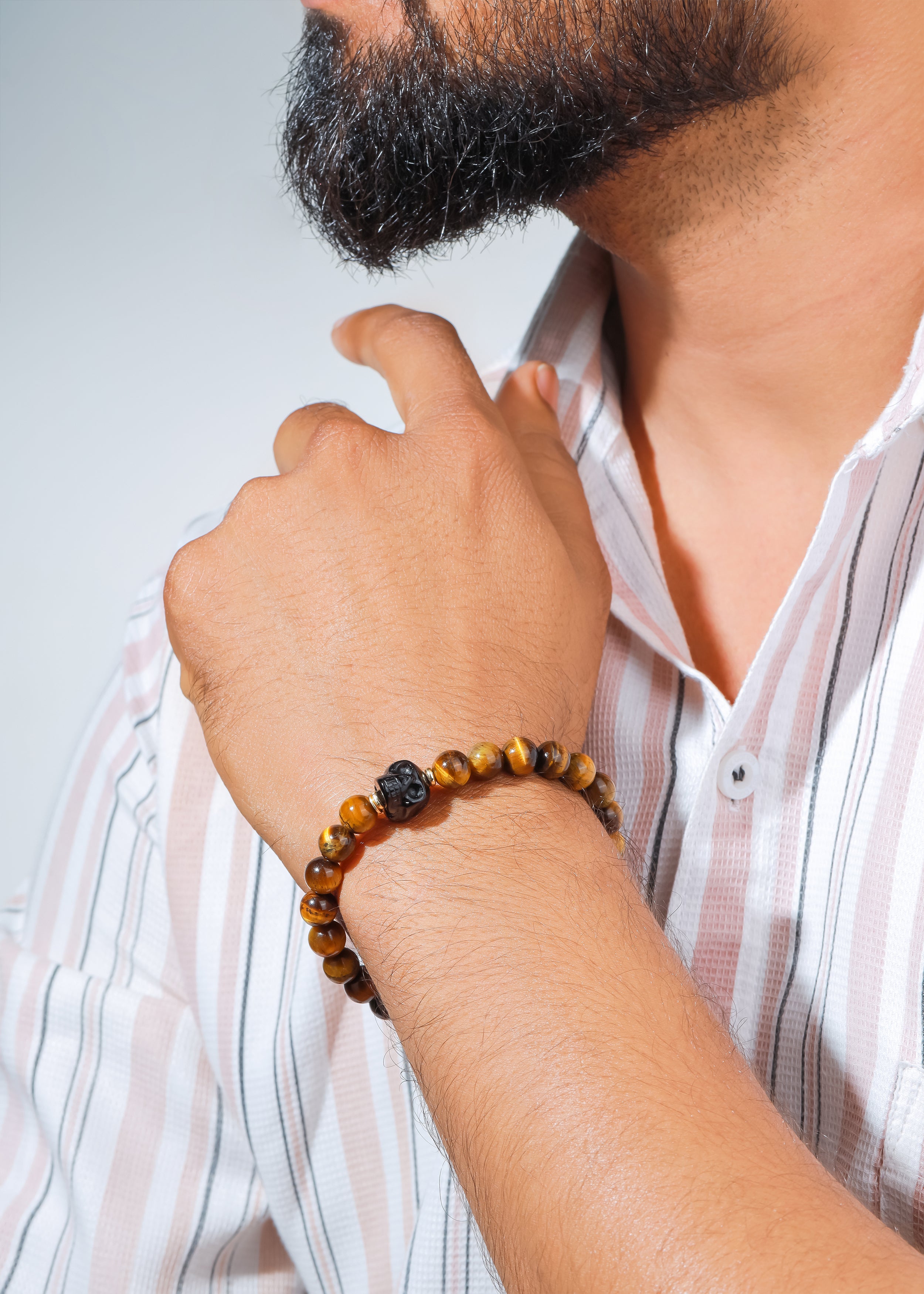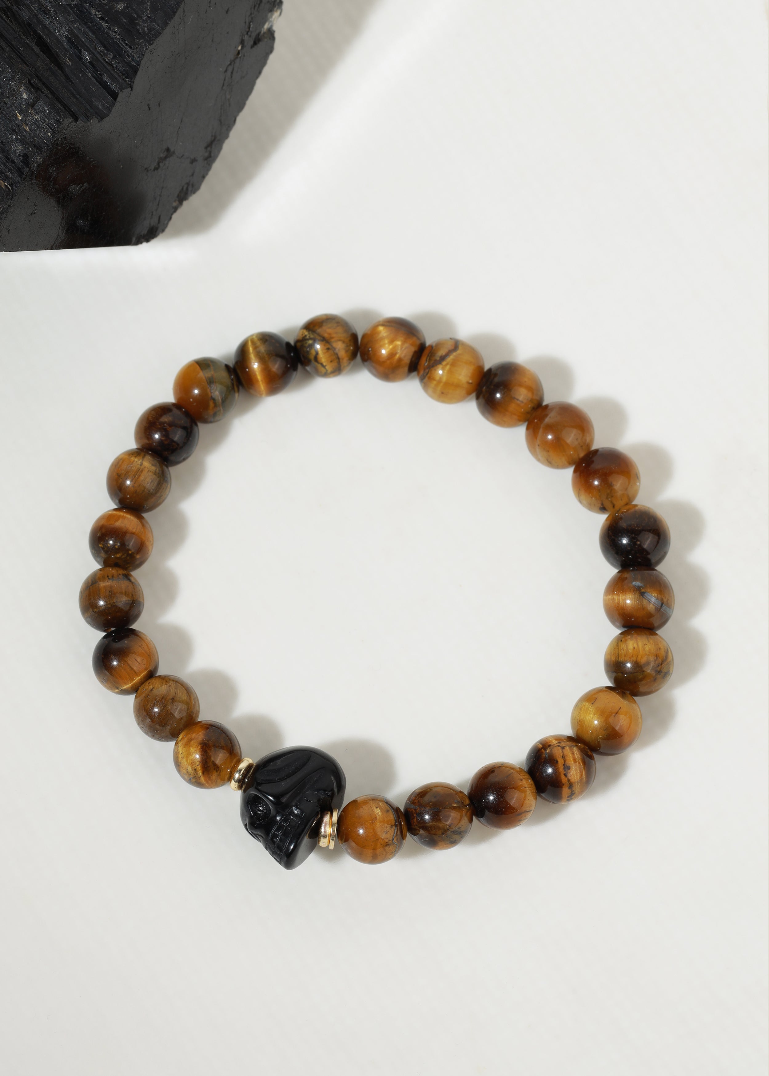 Prosperity Skull – Tiger Eye & Black Onyx Stretch Bracelet