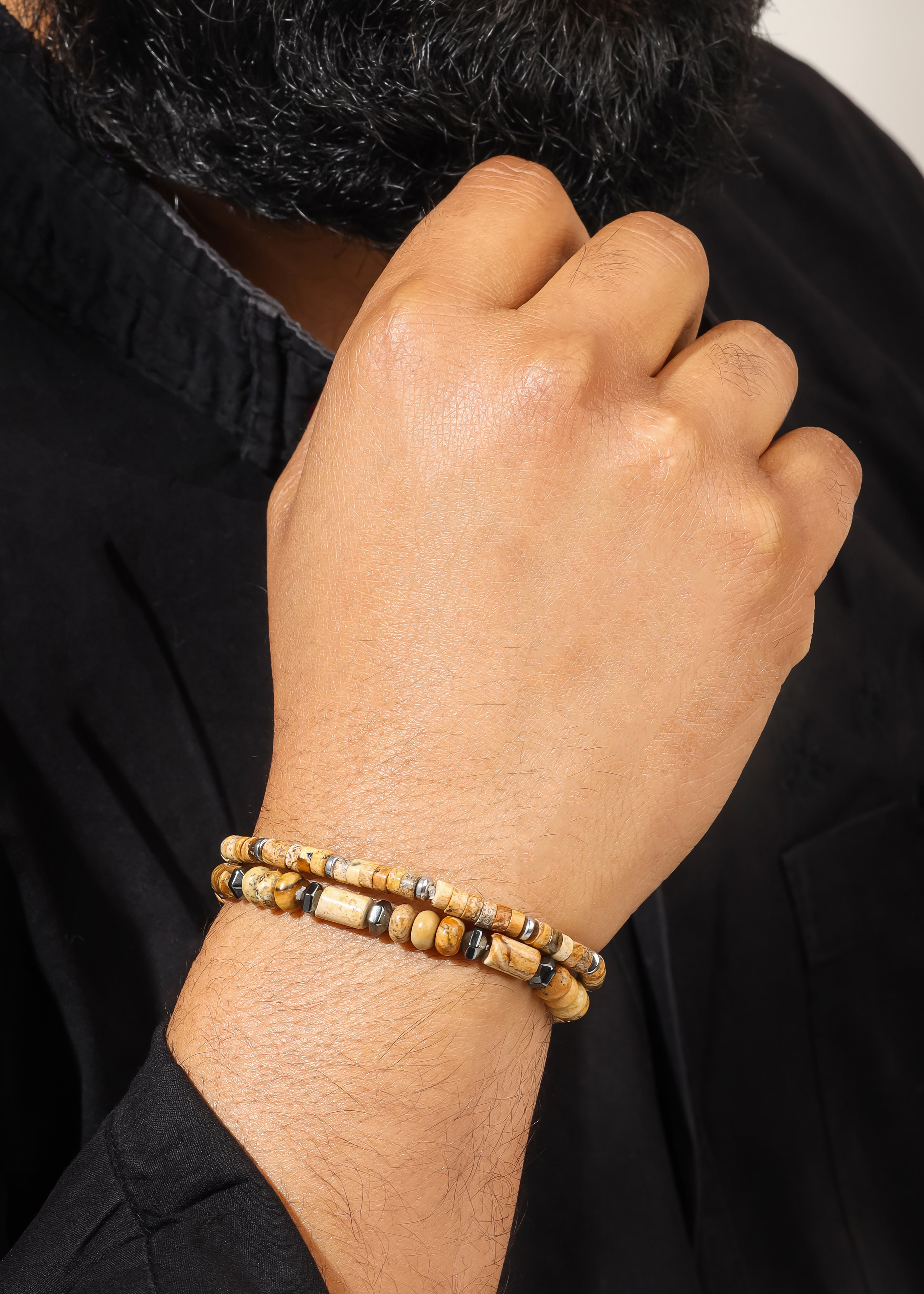 Design Detail: This bracelet features natural Picture Jasper and Hematite beads on a strong elastic cord. It’s simple, durable, and made to keep you grounded and balanced every day.