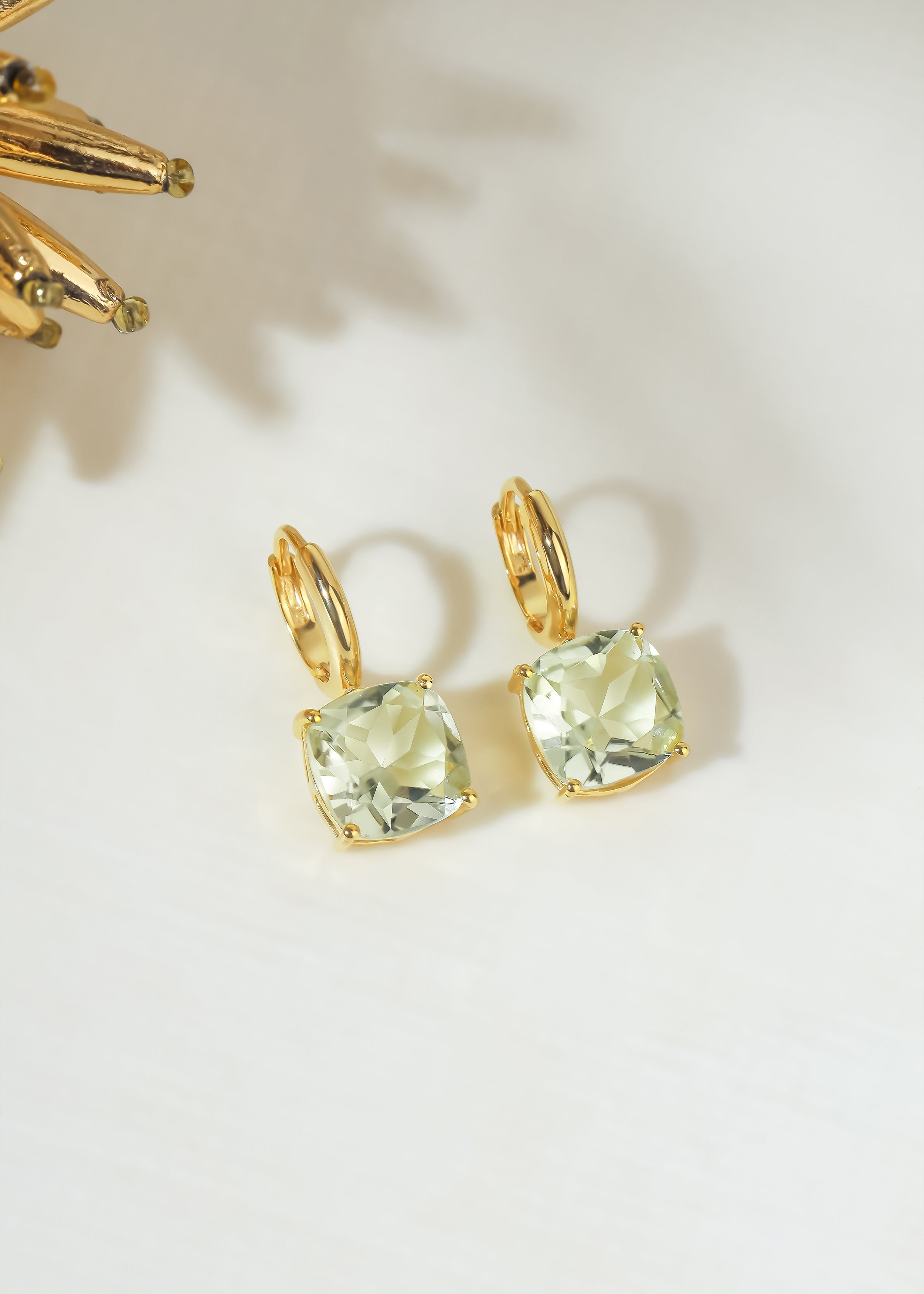 Design Detail: Embrace calmness and balance with our Vitality & Growth Green Amethyst Hoop Earrings, featuring cushion-cut natural amethyst gemstones set in 18K gold plated over 925 sterling silver. Known as the stone of peace and inner strength, amethyst is believed to promote relaxation, clarity, and positive energy.